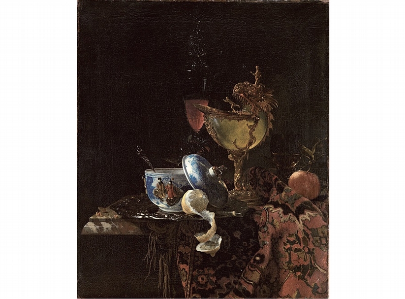 威廉.考爾夫1662年作(有中國瓷碗、鸚鵡螺杯與水果的靜物)。圖/阿姆斯特丹國家博物館提供。