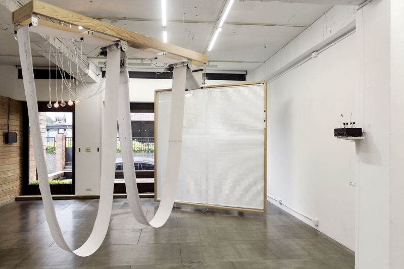 毛利悠子Yuko Mohri|I/O-沒有馬戲的馬戲團 混合媒材:紙張,木材、勺子、手風琴、燈泡、百葉簾等 尺寸依空間而定 2016 就在藝術空間提供