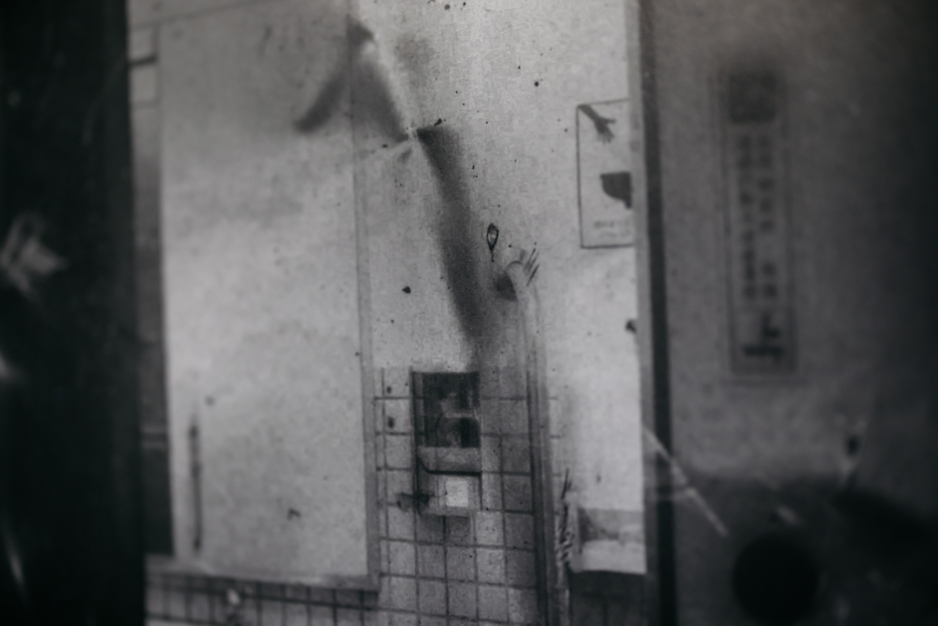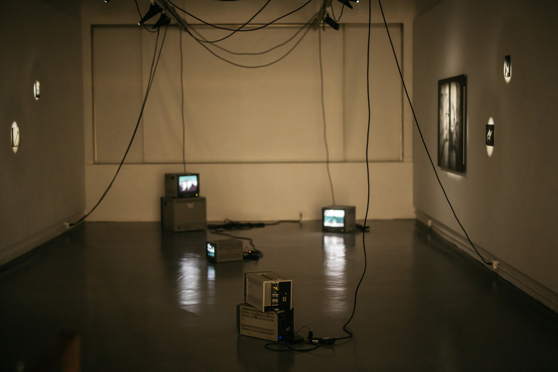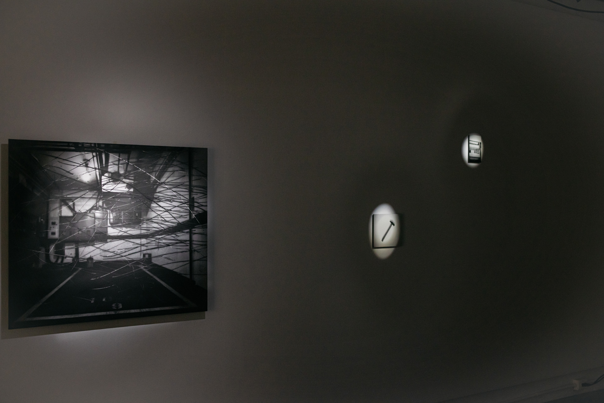 拍照的時候首先我看到很多線,我覺得這些線相對於掛在牆上的照片讓空間看起來更加的充實,所以我拍了很多線條的畫面。我感覺如果我的鏡頭更廣一點,那這些線條就會串連這些照片與地上的電視。但是我的鏡頭焦段是50mm,所以我只拍到這些線條的片段。在照片之中也有很多線條,這些線條一樣承擔了組織畫面的功能,它讓我的注意力從畫面之中的一個個對象,擴大到整個畫面。因此我感覺這些照片不是對象的記錄,而是一個視覺形式整體的呈現。我發現無論是空間之中的線條(電線),或是畫面之中的線條,它們都導致我注意各個元素之間的關係,於是外在的世界似乎就沒有麼重要了。