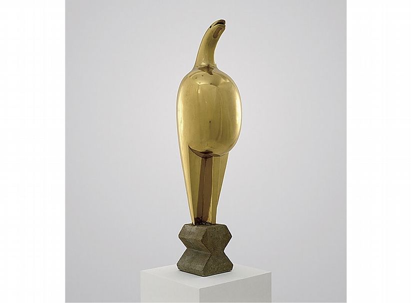 布朗庫西,《后鳥》,1912(?),拋光黃銅,高73.1 cm(包括檯座),義大利威尼斯佩姬‧古根漢美術館。