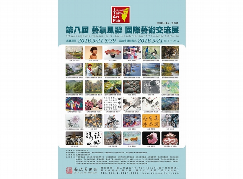 「藝氣風發-國際藝術交流展」自2013年首屆活動後,即獲得藝術圈的高度肯定及共鳴,引起熱烈迴響。第八屆活動,擬於2016年05月21日~05月29日,假長流美術館‧臺北館盛大舉辦,並於05/21(六) 10:30 a.m舉行開幕式。本活動由南投縣政府文化局指導,北京清華大學美術學院、廈門大學藝術學院、山東藝術學院-東方藝術研究所、長流美術館、及藝氣風發國際展覽館聯合主辦,長美藝術股份有限公司承辦,總策劃召集人張雨晴教授。參展藝術家有來自美國Mark Nilson;日本牧田草平、張義明;韓國金永煥;北韓朴賢哲、金哲洙、金峰國、金賢明、成赫、李根千、宋石哲、鄭赫哲、孫明成、鄭英華、黃錦赫;荷蘭黃筱琍;大陸李庚、馬致遠、董慶文、吳鐸、曾成聰、李晉陽、丁立人、于守萬、陳大中、田根承、萬光鋒、郭振宇、劉喬喬,與臺灣胡念祖、袁金塔、呂仁清、范姜明華、楊源棟、陳豐美,共35位全球各地傑出藝術家齊聚一堂,展出作品涵括油畫、水墨、書法、雕塑、陶瓷、裝置藝術…等多種門類,及中華愛藝協會所提供的古文物珍品,是難得一見的藝術盛會。