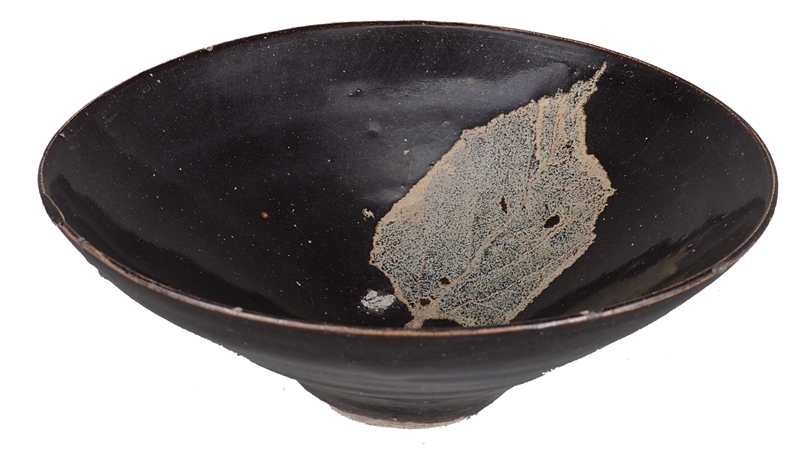 南宋吉州窯〈木葉天目碗〉高5.3公分、最大徑14.7公分,大阪市立東洋陶磁美術館.住友集團寄贈安宅收藏。