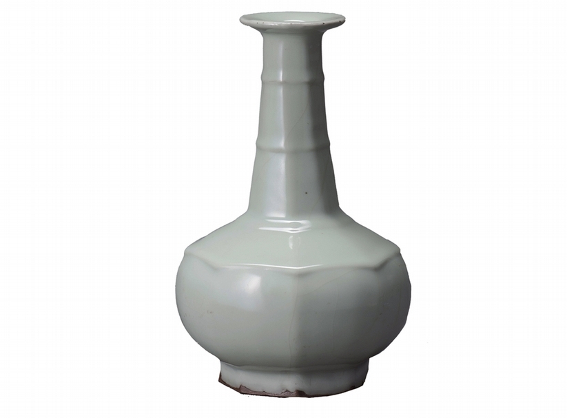 南宋官窯〈青瓷八角瓶〉高21公分、最大徑13.5公分,大阪市立東洋陶磁美術館.住友集團寄贈安宅收藏。