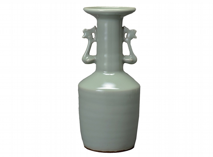 南宋龍泉窯〈青瓷鳳凰耳花生〉高27.4公分、最大徑11.2公分,大阪市立東洋陶磁美術館.住友集團寄贈安宅收藏。