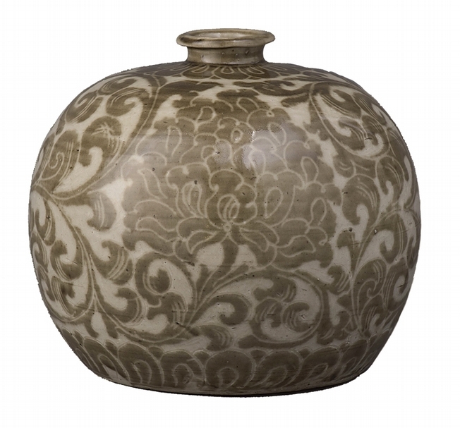 11~12世紀 北宋 耀州窯〈青瓷刻花牡丹唐草紋瓶〉,日本重要文化財