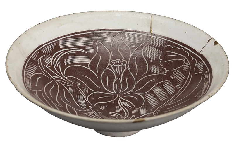 北宋到金當陽峪窯〈白地黑搔落束蓮紋碗〉高4.5公分、最大徑13.4公分,大阪市立東洋陶磁美術館.井上虎之助寄贈。