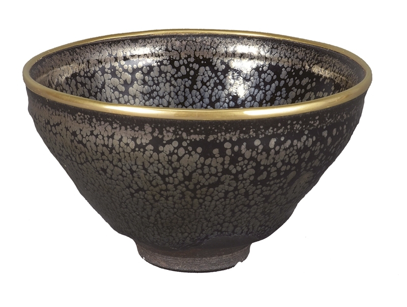 南宋建窯〈油滴天目茶碗〉高7.5公分、最大徑12.2公分,大阪市立東洋陶磁美術館.住友集團寄贈安宅收藏。