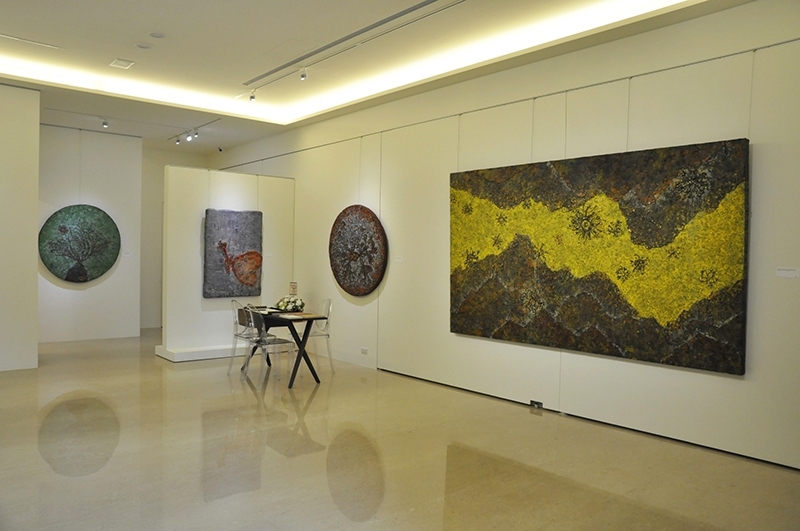 旻谷藝術推出的首場展覽是台灣藝術家曾英棟的近期新作。曾任樹德科技大學室內設計系專任副教授的曾英棟,從教職退休後專心從事藝術創作。擅長多元媒材創作,作品質地帶有時間流逝的痕跡,粗糙的肌理展現的即是藝術家的內心世界與生活寫照。曾英棟1980年代起活躍於南台灣畫壇,曾舉辦「南台灣新藝術風格」雙年展,2015年在台南設立甘樂阿舍美術館,近年來除了活躍於海外,今年起也展開台灣各地的巡迴展,首站從台南出發。5月初,由台南市文化局主辦的「2017台南傑出藝術家巡迴展──赤焱府城:曾英棟×許自貴雙個展」於台南文化中心展出,這裡的「赤焱」指的是南部猛烈的太陽,由於台南位於熱帶氣候位置,強烈的陽光照射,萬物生機盎然,這也成為藝術家以「赤焱」的色彩和能量為意象的創作靈感。此展在台南展出後隨後於7月底移至台北國父紀念館。旻谷藝術即是在此脈絡延續下於9月初以個展形式正式於台中的新空間呈現完整之作。曾英棟的作品風格不受思緒拘束,天馬行空的遊走,創造出活潑卻不躁動的形式,深沉卻不陰鬱的氣質,展出多幅系列作品:《金山銀山》、《發財樹》、《天地之和》、《能量風景》等,孕育出和諧且安定的力量。鄭筑尹表示發跡於南部的曾英棟,作品深受中南部藏家的喜好,擁有一群死忠的收藏群,加上藝術家充滿能量,喜、福與天地融合的繪畫形式,特別吸引藏家喜愛。