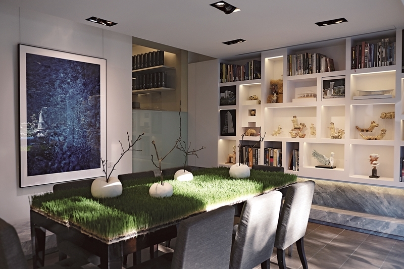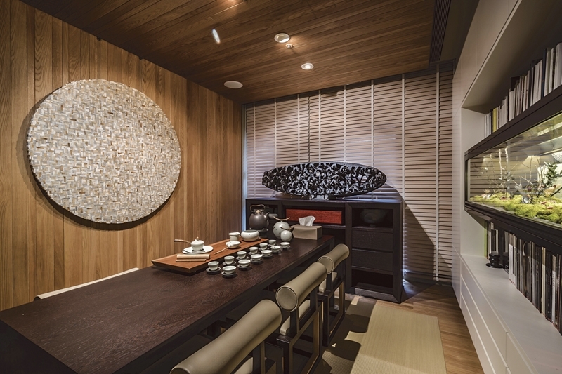 譚精忠家中茶室,放置著鄭斗和《森林的思考》(左)及徐永旭《2015-25》(中)。圖|設藝之間