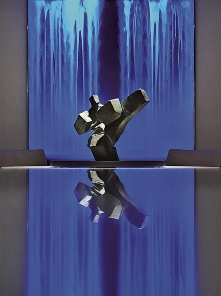 千住博《瀑布》前巧妙放置了朱銘雕塑《太極-踢腿》。圖|設藝之間