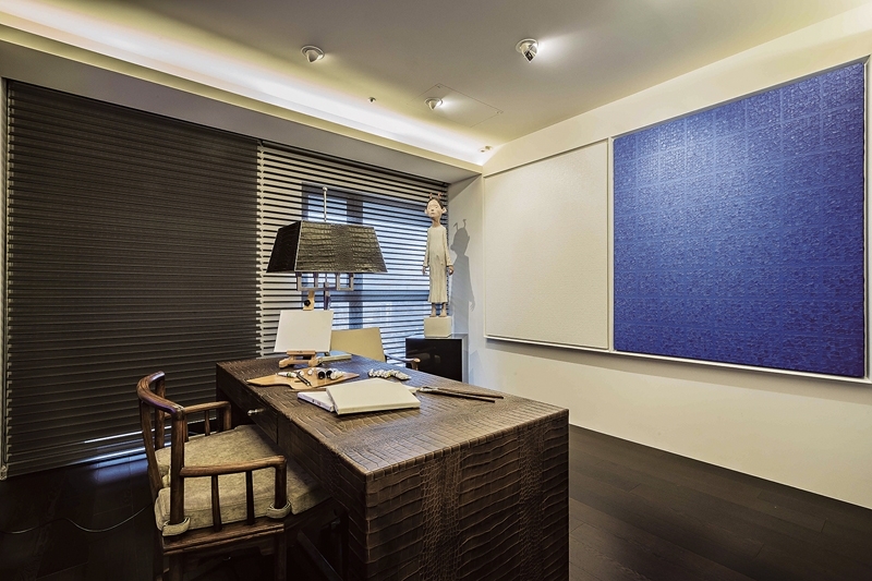 譚精忠家中書房,右為鄭相和作品《無題…》。圖|設藝之間