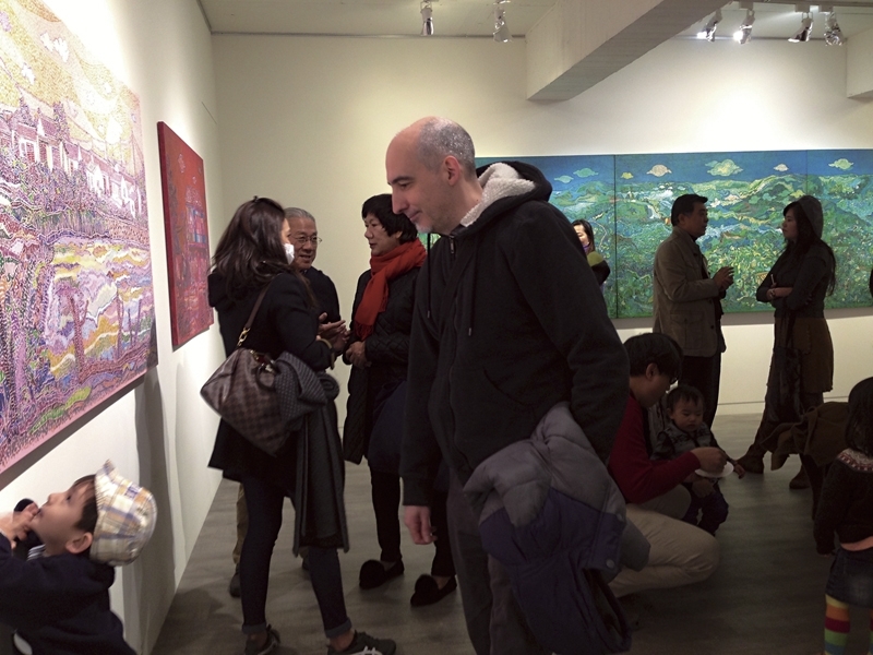 元宵節的當天下午,緬甸藝術家鍾奕華「時光織錦」於藝境畫廊揭開序幕,展覽現場熱鬧滾滾,溫馨活潑的氣氛,為開春增添不少洋洋喜氣。鍾奕華個展是藝境畫廊重返東區的首場開幕展,負責人許文智開懷地說,藝術家的作品深受藏家的喜愛,在開幕之前即有成交了,藝境畫廊開春後的第一槌,滿庭芳香!