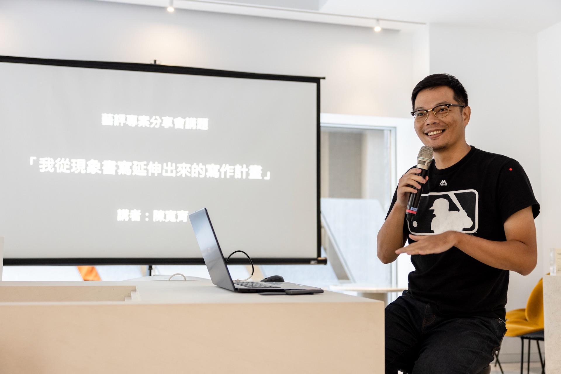 下半場發表的陳寬育接續此一討論,笑稱自己相對而言,可能是非常傳統的攝影研究者。他分享的「我從現象書寫延伸出來的寫作計畫」,主要關注攝影的評論而非攝影作品。此般「評論的評論」,其實亦不同於我們對傳統藝術評論的認識。陳寬育的研究與文本分析對象為國內外學術期刊與重要著作中以攝影為主題的評論文章,但並非借西方論述評析本地攝影生態,或單純進行文獻回顧,而是借鏡更多層次的分析視角,「來試圖引發自己看待在地的攝影發展的視角,並啟動自身面向在地的影像書寫機器,」同時「更深入思索攝影與其他藝術類型之關聯。」陳寬育自陳過去因任職雜誌社編輯,習慣的書寫方式為整理對象的訪談稿件。從報導者過渡至接受評論書寫的挑戰,他自己目前暫時傾向逃避對藝術評論的定義,更意在強化藝術評論中各面向的實踐,比如本次「現象書寫」計畫即旨於將文獻分析完成得更為透徹。