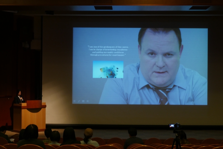 韓國藝術家金雅瑛(Ayoung Kim)於「春之當代藝論 X 2018 TIVA 離線瀏覽」論壇現場分享。(鳳甲美術館提供)