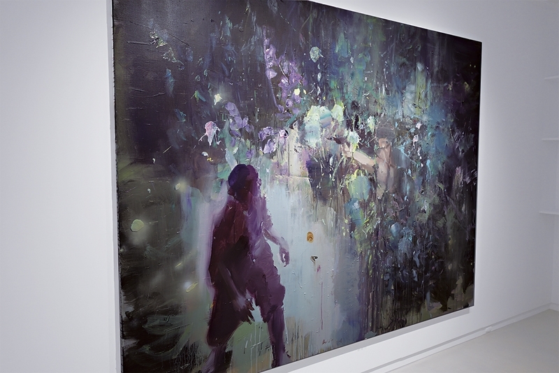 畢業於北京中央美術學院版畫系的韋嘉,早年從事版畫創作,其後轉向平面繪畫領域,作品混融著抒情與敘事性,且命名多半令人聯想到中國古典文學用辭,像是《遲年急景》、《錦上霜》、《小恍煌》、《遺少》、《埋寄煙雲》等。韋嘉表示,這些名稱往往是畫作完成一段時日後,偶然乍現於腦中的詞彙,倘若文字的意境與畫作契合,那麼便取用做為作品名稱,然而畫作裡的故事朝所有觀看者開放,並不受名稱侷限。觀看他的畫作時,也能感到飽滿的情感與色彩在畫布上有機生衍,就像自由盛開而不斷翻越邊界的植物,以奼紫嫣紅覆沒路徑,而非依循路徑的形狀序列有致地生長。他自言近年繪畫不作手稿,「早年有意地經營構圖,總想跟別人不一樣,事實上,當你著手繪畫時,畫上的筆觸、感覺和痕跡就是自己的,也就跟別人不一樣了。當內心某種抽象的構思,積聚成一股想創作的慾望時,我就在白色畫布前直接創作、反覆修改,雖然也會感到害怕、感到戰戰兢兢,而戰戰兢兢來自於不確定及沒把握,但這正是我想要的感覺,接著我便像是進行儀式般地,清楚地把自己想說的事畫出來,這也是我最為迷戀的工作狀態。或者說,我迷戀創作過程書寫的自由度。版畫創作奠基於理性的程序,我從石版轉向畫布就是想追求自由,而藝術就是讓人自由的。」作品《遺少》中一名低頭男子從大片燦爛繁花中走出,他像是與身後幽邈的世界告別,又像是遁世離群。《小恍煌》中的男子則像受到突如其來的呼喚,回視身後繁鬧的景象;若說在舊工作室完成的最後一幅畫、也是這次展覽第一件完成的作品《遲年急景》應和了王國維詞「試上高峰窺月」的情景,那麼接下去創作的《小恍煌》說的便是「偶開天眼覷紅塵,可憐身是眼中人」的心境了。另有部分人物畫如《錦上霜》等,取材自曾見過的照片,韋嘉捕捉對圖景的情感共鳴,再以自己的繪畫語言重新詮釋。
