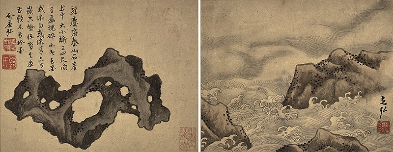 圖3 孫克弘〈奇石圖冊〉共12開,各19×24公分,鴻禧美術館藏。圖為其中二開。圖∣鴻禧美術館