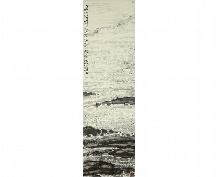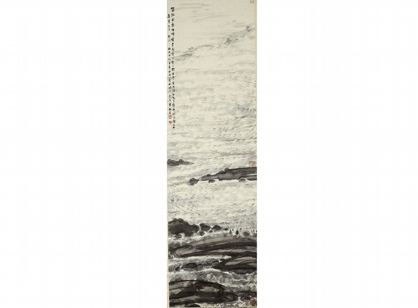 圖9 傅抱石1946年作〈觀海圖〉,143×41公分,鴻禧美術館藏。圖∣鴻禧美術館