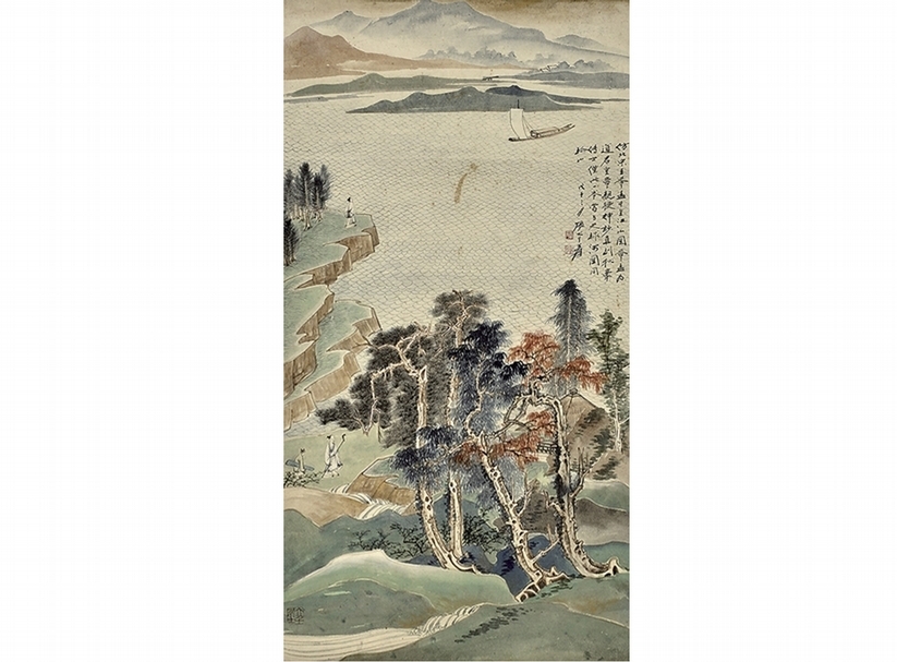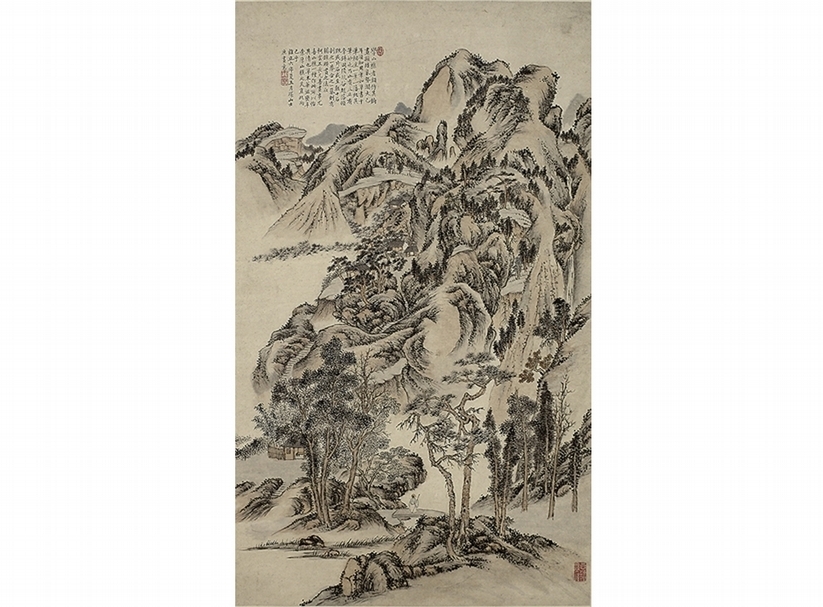 圖7 方士庶1728年作〈山水圖軸〉,98×57.8公分,鴻禧美術館藏。圖∣鴻禧美術館