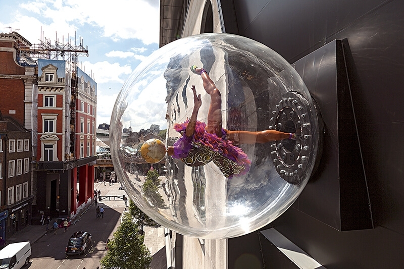 在倫敦鬧區的柯芬園(Covent Garden),抬頭往上看,會發現有位芭蕾女伶(Global Head Ballerina)在玻璃球中旋轉;若在2010年至2012年間曾到倫敦國家畫廊(National Gallery)前的特拉法加廣場(Trafalgar Square),不可能會錯過在第四基座委託案(The Fourth Plinth Commission)上頭的瓶中船(Nelson’s Ship in a Bottle)裝置作品,現在則是放在格林威治海事博物館(Greenwich Marine Museum)的入口處。這兩個作品的創作者,就是即將在新加坡藝術門(Pearl Lam Galleries)個展的奈及利亞裔英國藝術家因卡.修尼巴爾(Yinka Shonibare MBE)。
