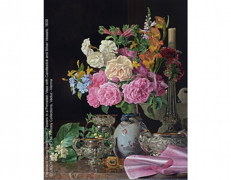 瓷瓶中的花與燭台及銀器,斐迪南.喬格.華德米勒,1839 圖|聯合報系