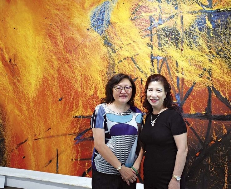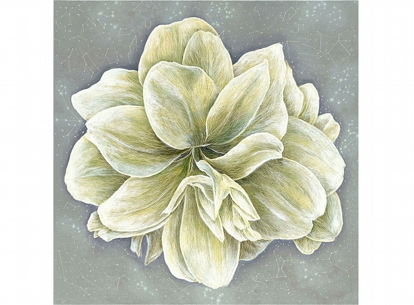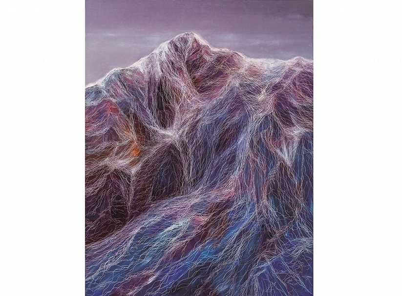 鄭麗雲透過帶有書法韻味的「線性」語彙,藉由地、氣、水、火的形貌,傳達對家鄉的所思所想。無止盡律動的線條,勾勒出大海的浪潮波光、冰川高山的崇峻,或是流盪宇宙間的大氣、暴烈旺盛的火焰。近期的花卉系列更隱含著生命的蓬發和女性的堅韌。