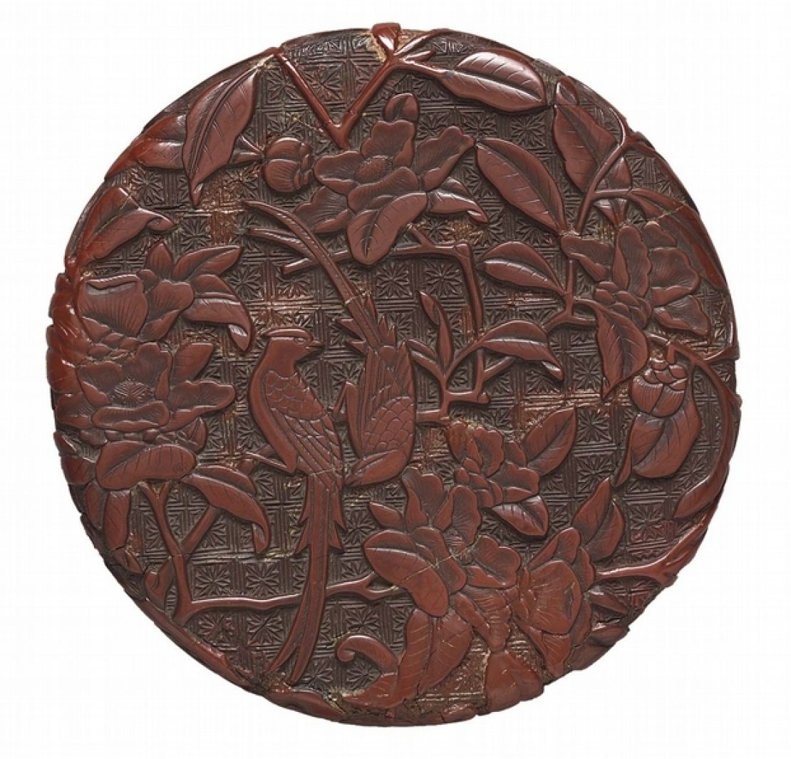 圖8 明永樂〈剔紅孔雀牡丹紋盤〉,Florence和Herbert Irving伉儷捐贈,2015年。紐約大都會藝術博物館藏。圖∣紐約大都會藝術博物館