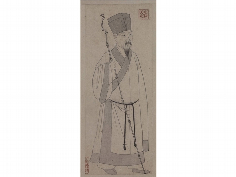 元趙孟頫〈行書赤壁二賦〉中附的白描蘇軾小像,國立故宮博物院藏。圖∣國立故宮博物院