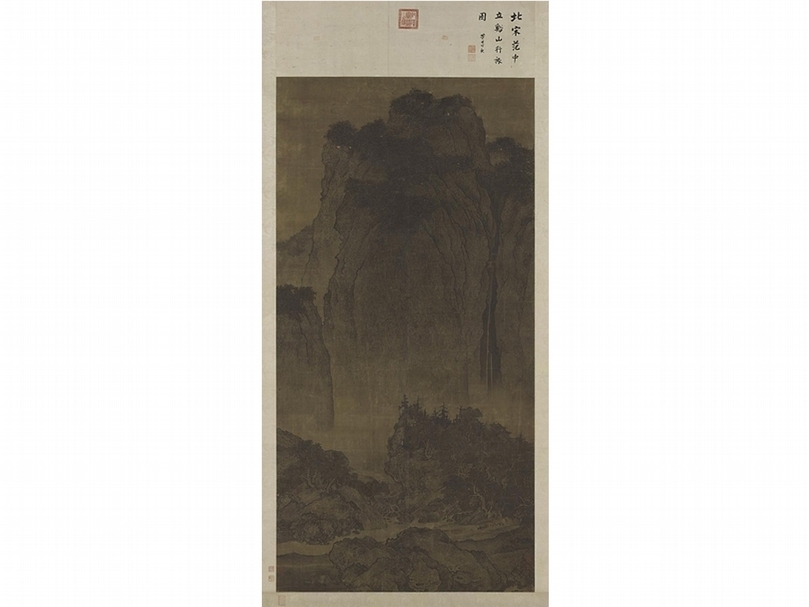 北宋范寬〈谿山行旅圖〉,206.3×103.3公分,國立故宮博物院藏。該畫於1996年原本會借展給紐約大都會博物館,但最後在台灣民眾反彈下,並未出國展覽。圖∣國立故宮博物院