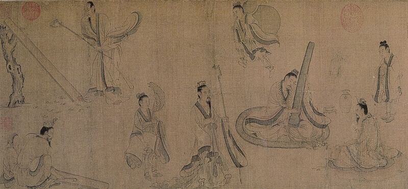 「宋徽宗對藝術的要求標準很高,他畫了宣和式、鳳勢式兩種琴的造型之後,就說宮中用的琴以後都要用這兩種形狀,所以才有官琴和野斲的分別出現,野斲指民間做的琴,這不代表民間不會做,但後來有貶抑的意思,意指如果你不按照正規的方式做琴,就會被稱為野斲。到了元朝時,琴的體制大小又有了重大的改變,理由無法確知,但一位從元朝活到明朝叫朱致遠的人,在當時琴做得最好,同時期還有朱元璋的軍師劉伯溫,據說蕉葉款式是他所發明。元朝不舉行科舉考試,讀書人都沒有事情做,就在勾欄裡寫雜劇,所以音樂在那個朝代反而到達一個高點。我在台灣見過元朝琴超過三張。古琴或古琴樂曲的名稱很多是託古人之名,仲尼琴就是其中一例。清代幾乎舉不出優秀的製琴者,因為明代的琴數量大且品質佳,在元代也是如此,前朝遺物中好東西太多。」