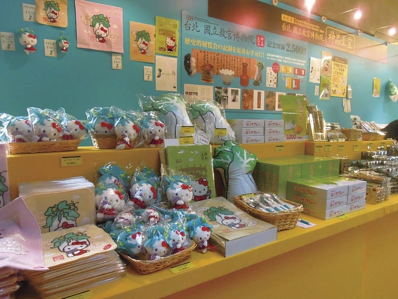 圖5 日本東博「特別展:台北國立故宮博物院 神品至寶」展場外,販售有各式〈翠玉白菜〉周邊商品,這些商品都是搭配這個特別展而特別研發的。攝影/王怡文。