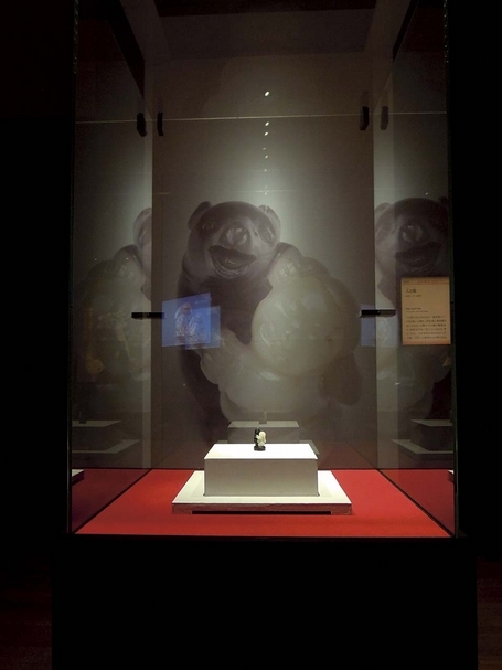 圖8 〈玉人與熊〉過去較少人關注,日本東博「特別展:台北國立故宮博物院 神品至寶」展中特別搭配俯視照片,讓觀眾更能清楚看到作品的生動表情,吸引觀眾爭相圍觀。攝影/王怡文。