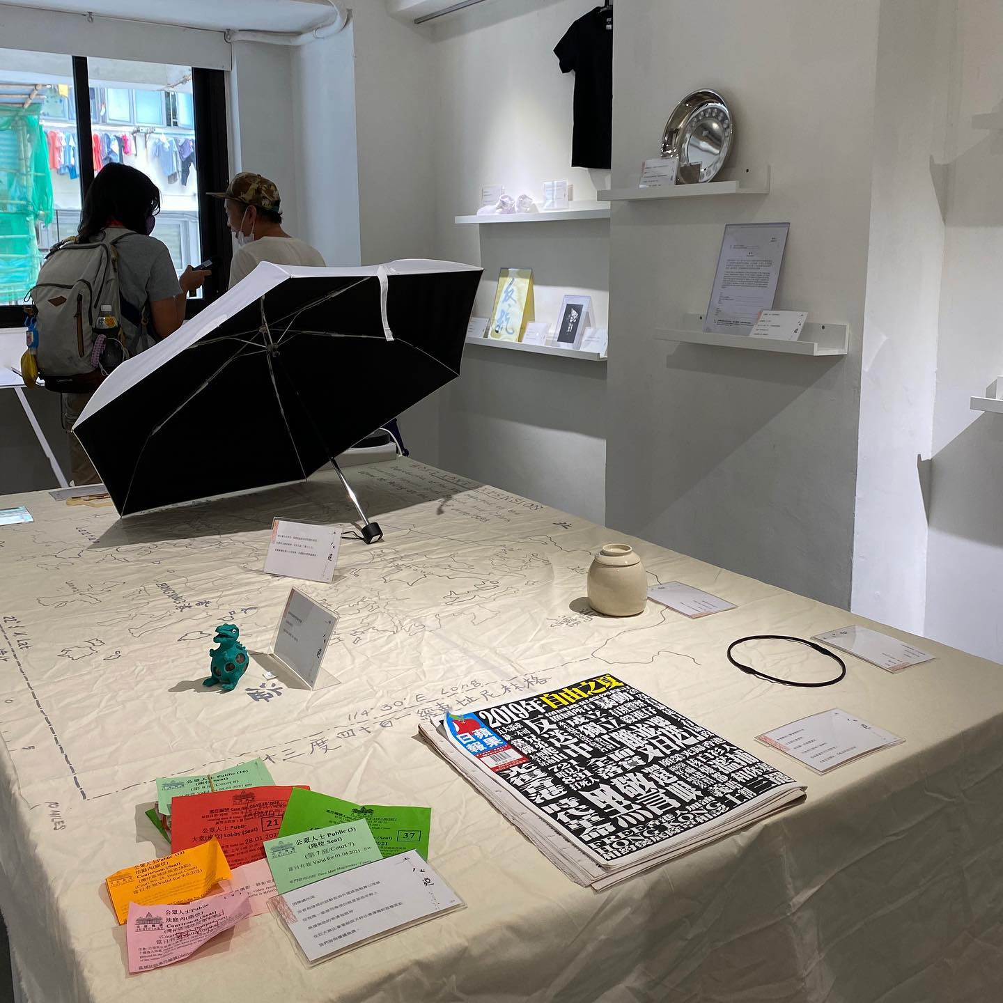 有了這些資訊和情感舖墊,展覽的最後部份選擇留白,把空間讓給觀眾。觀眾可以隨意留下一生活物件,並把自己過去兩年的變化和感受寫在信箋上交給工作人員。然後在場內選擇一件物件、連同物主的信箋帶走。工作人員小心翼翼地為觀眾送來的物件和信件以匿名的方式編碼——瓶裝水、告示貼、包裝紙巾、報紙、紙扇、勞工手套、未開封的濾罐……,曾經都是示威現場的必備。雖然暫時再無用武之地,卻集腋成裘,變成了臨時博物館。可以料想的是,所有展品/遺物將會隨着展期或不可預料的打壓而消失,但每一位參與者都成了收藏家,交換和盛載了這些不被官方承認的歷史見證。我向來以為所謂「關係美學」,不過只是市場推廣的變種。但在這個被恐懼與差疑籠罩的時刻裡,簡單的關係設置,便把孤獨沉溺在回憶裡的觀眾重新扣連。