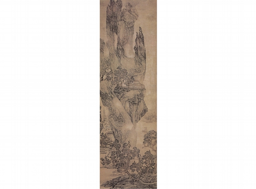 活躍於明代萬曆年間(1573〜1620)的知名畫家吳彬,其巨型掛軸作品〈江深草閣〉,是館藏中國書畫裡的絕佳名品之一。該幅繪畫高度超過3公尺,堂堂大作氣勢撼人。所描繪的山水風景,則是呈現奇譎幻怪的獨特風格,以致後人常以「狀奇怪」與「非人間」之詞語,來讚賞吳彬畫中的奇趣美學。此作原本保存狀況不佳,畫面多處破損不堪。後來館方與修復專家伊弗姆.荷西(Ephraim Jose)合作,重新裝裱畫作而讓它再次回到新館展場當中。另一件明代織品〈皇室女眷朝掛〉,則具有明確的萬曆朝紀年日期,實屬罕見情況。該朝掛的上部繡有左右對稱的卍字與壽字,證明此件衣物應是為了祝壽慶典而製作完成。中間部分則出現攀沿而上的五爪金龍,其與背景的五彩祥雲和底部的各類章紋,皆指向此為宮廷貴族的冕服衣飾。