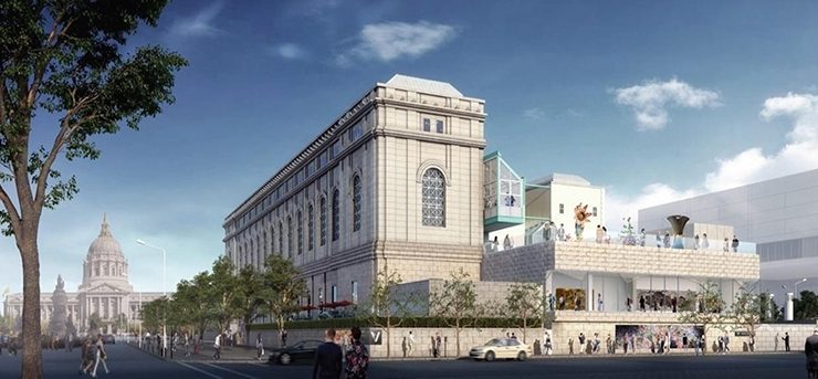 從1970年代開始,由於亞洲藝術博物館館內常設展無法澈底執行、藏品數量逐漸增多,以及教育活動空間有限等問題,都讓遷移和擴建的討論不時浮出檯面。尤其在1989年的洛馬普列塔(Loma Prieta)地震之後,館舍建築主體更是出現安全疑慮,於是遷館一事便成定局。後來舊金山市政府決議將市政中心對面的公共圖書館選為新館址,且為了籌措營運經費,不僅公家單位發行專屬公債,館方基金會的重要人士如強森.博加特(Johnson S. Bogart)、茱蒂斯.威爾伯(Judith F. Wilbur)和梅拉.莫雷(Mayra B. Morey)亦出面向各界募款。其中尤其是一位來自矽谷的美籍韓裔企業家李仲文(Chong-Moon Lee),他以1500萬美元的鉅額捐款而備受注目。而且館方還委任曾將法國舊火車站改為奧賽美術館(Musée d’Orsay)的知名義大利女性建築師蓋.奧倫蒂(Gae Aulenti,1927〜2012)來主導重建設計。最終在2003年時,帶著嶄新面貌的亞洲藝術博物館,再度熱烈地開門迎接四方觀眾。