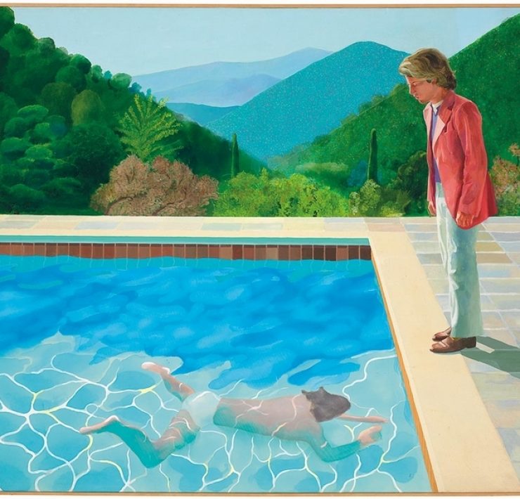 霍克尼《彼得從尼克家的游泳池爬上岸》。