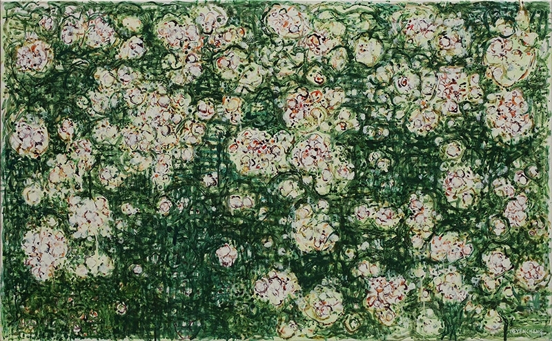 顏貽成的作品總是使繪畫的存在很清冽的區隔於當代藝術氛圍中,作品中依稀可辨識的線條與形體的交錯層疊,讓人在感知與認知的經驗中,找尋那一種游離在不同美學體系下可能交疊的美學經驗,或說是探索著一個超越繪畫本身的自我存在與價值認同。
