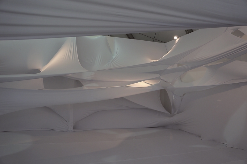 藝術家張爽特別為了首屆Art Central創作一件以人工縫製的大型裝置,做為場內與更多觀眾交流之作。(攝影/林怡秀)