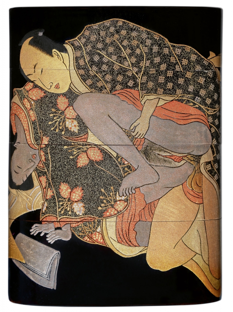 是次拍賣的印籠當中,匠人柴田是真(Zeshin Shibata)的〈中國古墨意匠黒漆印籠〉備受關注。柴田是真生於幕府政權傾頹的動盪時期,11歲開始學藝,在明治時代(1868-1912)接觸西方藝術,為其創作帶來大破大立的風格及技藝轉變,研發出漆繪(urushi-e,即以濕漆施於紙質材料上),與傳統的蒔繪(Maki-e,在漆器上以金、銀粉等材料繪製出裝飾紋樣)截然不同,可以仿造其他媒材的質感。此件印籠以漆模擬中式墨餅的啞緻質感,而邊緣碎裂的痕跡也是故意刻上,技巧出神入化。