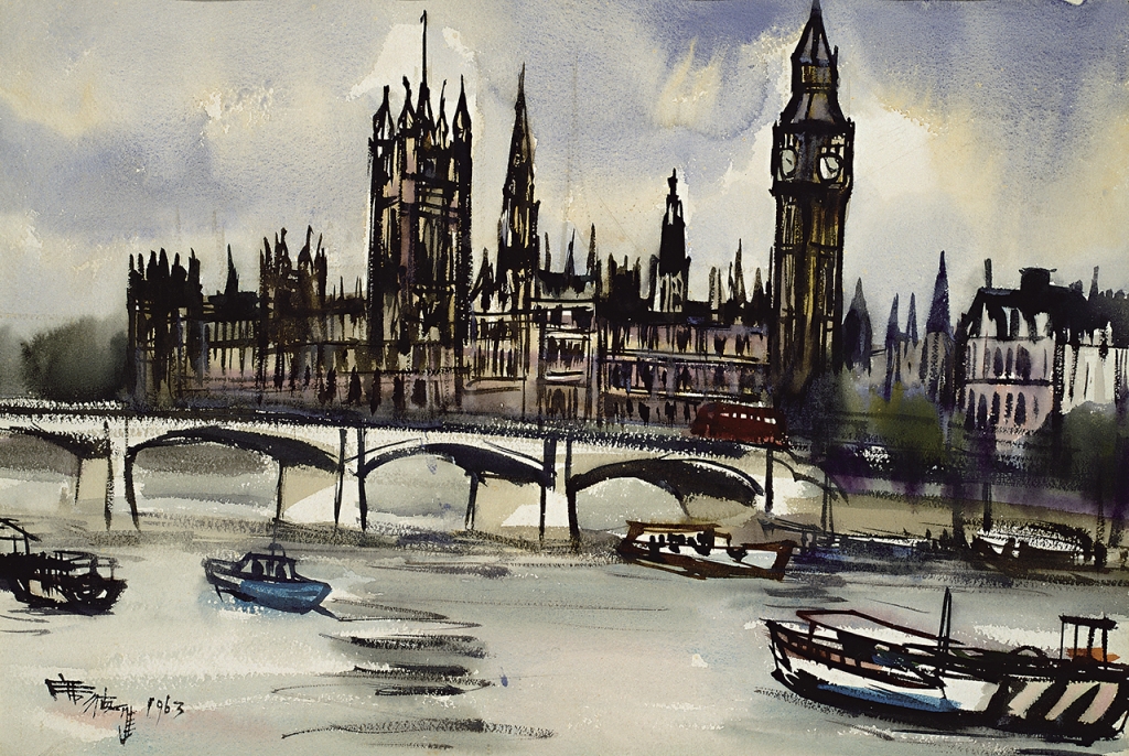一到了1960年代,他與世界的腳步同調,西方都會化的氣息向世界散播開來,他畫下了張力強大的《紅衣男孩》,筆觸的表現力彰顯人物的個性。他喜歡畢費,那種介於古典與都市之間的熱情與孤獨,他把粗壯有力的結構感、空間感,融入人物的線條與建築物的輪廓。到了1970年代,眼界更清楚,他要銜接他的老師林風眠的步伐,在台灣、在自己生活的土地上,成為中國畫的改革者。我們看席德進把台灣的山水畫活了,但又承襲了中國文人畫的意境,到了1980至1981年,他筆下一系列的山峰上的雲霧,雲煙繚繞, 那真是人生與藝術上登峰造極的境界了。席德進的三個十年,最後嘎然而止,結束在雲端深處的高峰。也許是幸福,他沒有經歷人生力不從心的階段。他也不是席勒(Egon Schiele),好像才開始就結束了。