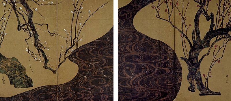 圖3 江戶時代尾形光琳〈紅白梅圖屏風〉(非本次展覽展品),日本國寶,日本MOA美術館藏。圖/本刊資料室。