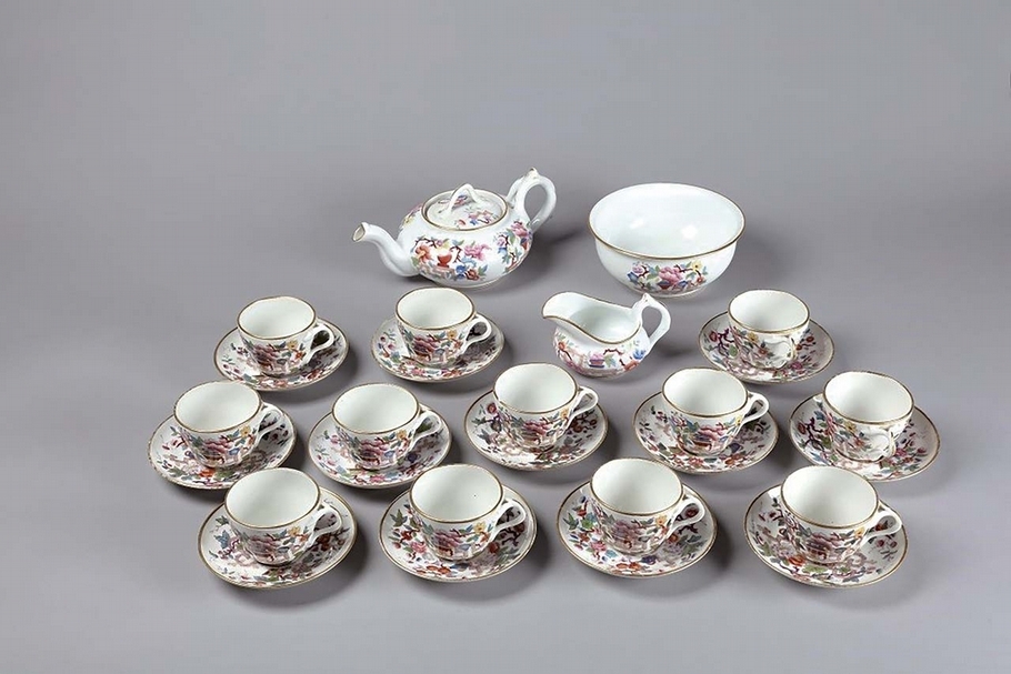 俄羅斯聖彼得堡19世紀中期〈轉印貼繪白瓷花卉紋茶組(27件)〉,臺灣私人收藏。圖/新北市立鶯歌陶瓷博物館。