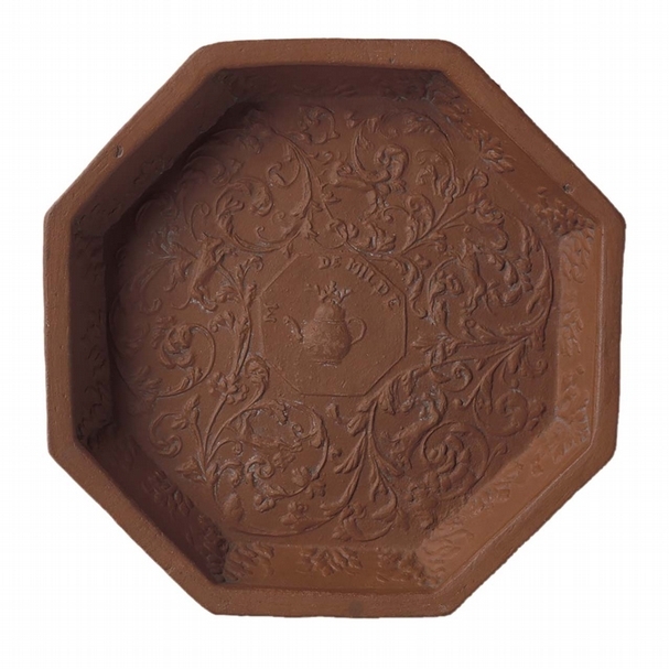 荷蘭德爾夫特17世紀末期~18世紀初期〈紅陶「米爾德」(De Milde)商標八方茶盤〉,荷蘭國家博物館藏。圖/荷蘭國家博物館。