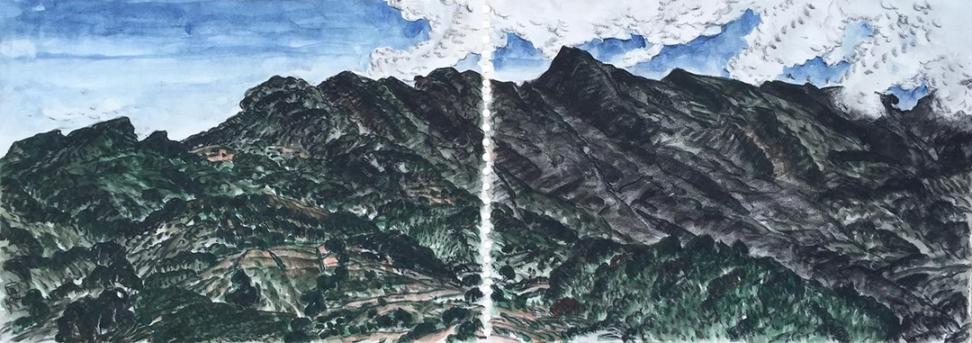 林銓居《龍泉部落後山》,炭筆、彩墨、紙本,29.5x83cm,2016。(藝術家提供)