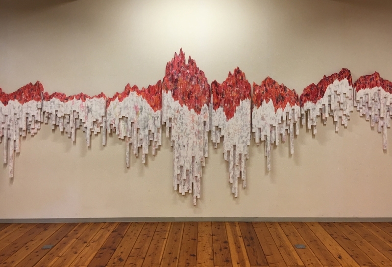 水谷篤司 最初的素描 210x600x10cm 木、水性日本畫顏料、壓克力顏料 2017 圖片提供:月臨畫廊