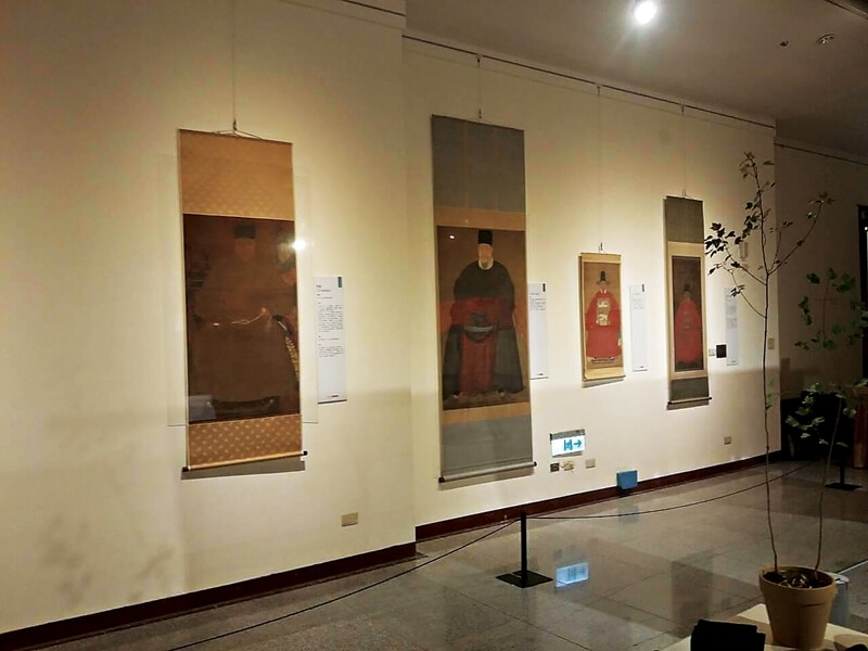其中只有一張可能是沒被重裝的作品,比較起左右的其他裝裱形式,它極為簡單。這讓筆者想起國立台灣博物館藏的〈鄭成功像〉修復前的樣子,也是如此的簡單。裝裱形式的使用目的與方法不被了解時,我們對於形式的改變與決定就都是想像。這也是每一個從事保存工作的人,所需要面對的問題。