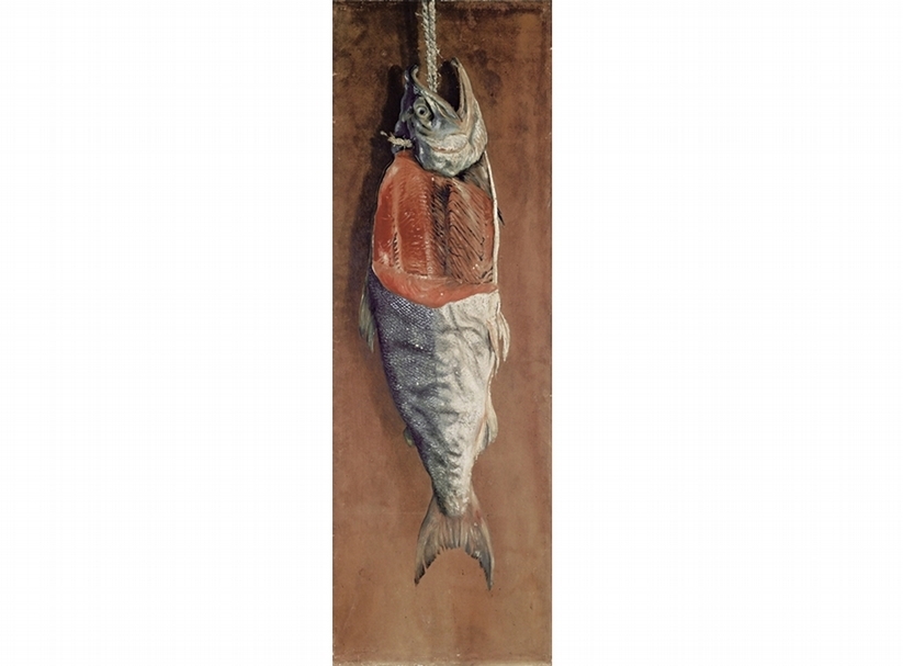 圖1 高橋由一明治十年(1877)作〈鮭〉(非本次展覽展品),油畫,日本重要文化財,東京藝術大學藏。圖╱維基百科。