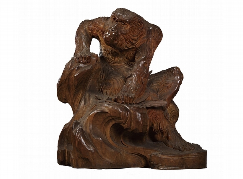 圖5 高村光雲明治二十六年(1893)作〈老猿〉,木雕,日本重要文化財,東京國立博物館藏。圖︱東京國立博物館