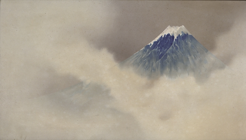 濤川惣助偏愛製作具有濃厚日本風情的作品,〈畫琺瑯富嶽圖〉即以最經典的日本名勝富士山為主題,採用「無絲七寶」技法製作一幅充滿日本畫風的富嶽山水。白雪覆蓋的富士山頭自大片雲霧間露出,藍色的山體明亮動人,襯著淡紅色的天空,色調柔和優雅,濃淡變化自然,如詩如畫的視覺效果令人感動,亦將七寶工藝從裝飾性質提升至藝術的唯美境界。