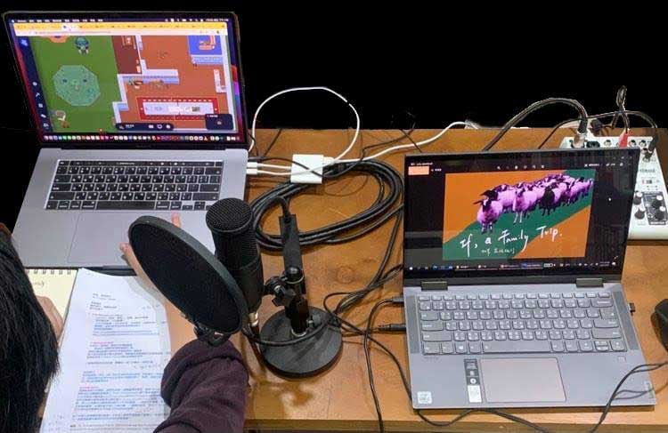 《如果,家族旅行》原先就有針對特定區域,廣泛收集許多地方的傳說與故事,而在這次線上的過程兩位創作者也重新經過討論、揀選過往收集的故事素材,分工上陳侑汝負責場景建置,由於她的專業主要在戲劇領域,本身就裡解不同的場景就會衍生出不同的故事性出來。而區秀詒則負責創造敘事、選擇要置入的文本和影像和聲音素材。