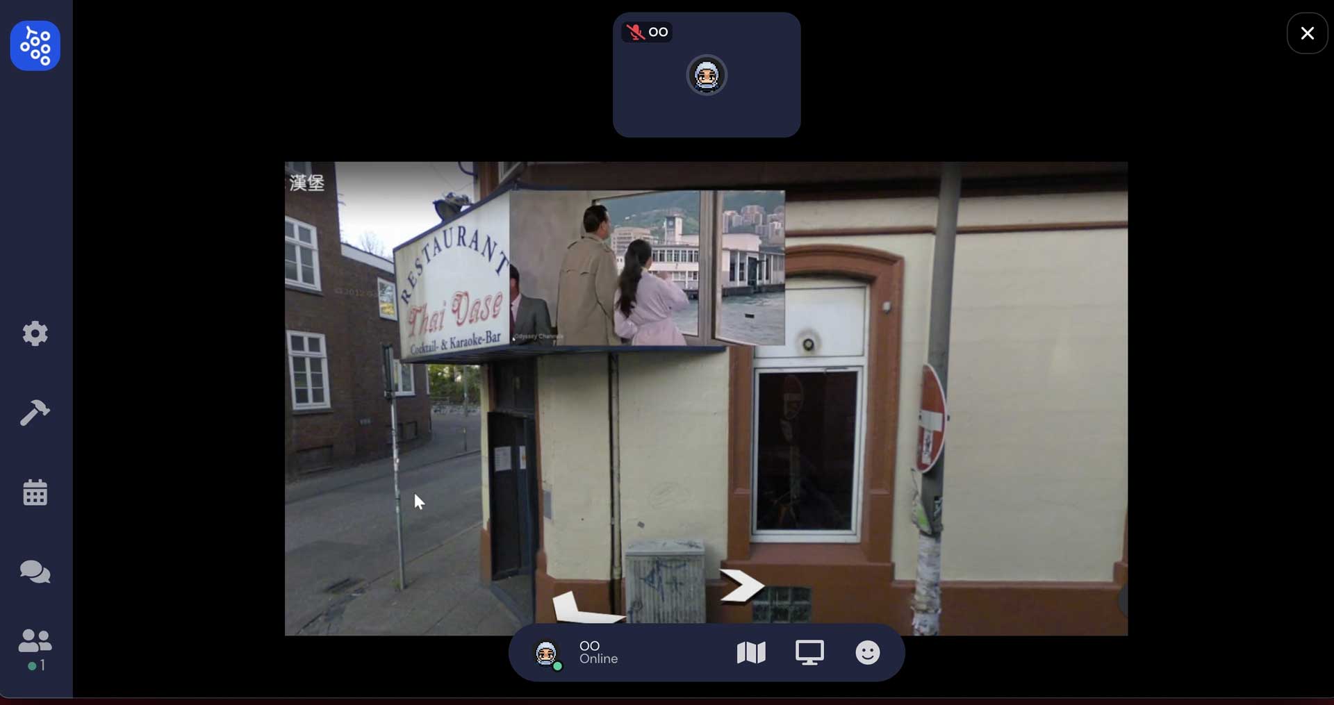 後來,陳侑汝發現了多數人用來開會或辦理座談會的Gather.town介面。這個介面存在一種早期電玩的那種粗糙感,最特殊的是,Gather.town提供一個環境,讓人們可以有類似真實世界的情感交流感,並開放使用者可以去建構場景,許多使用者都把場景建構成類似真實世界的展場或辦公室,以消解使用者對實體生活的渴望。